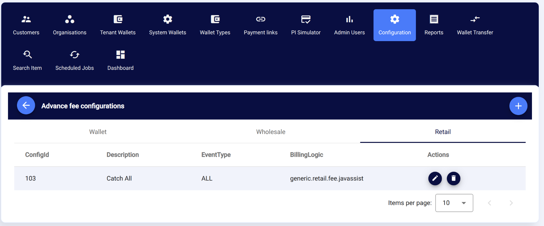 Eclipse supports a range of simple to configure fees for all withdrawal, payment and top up services. Tenant configs related to fees that can be configured through the admin portal are: